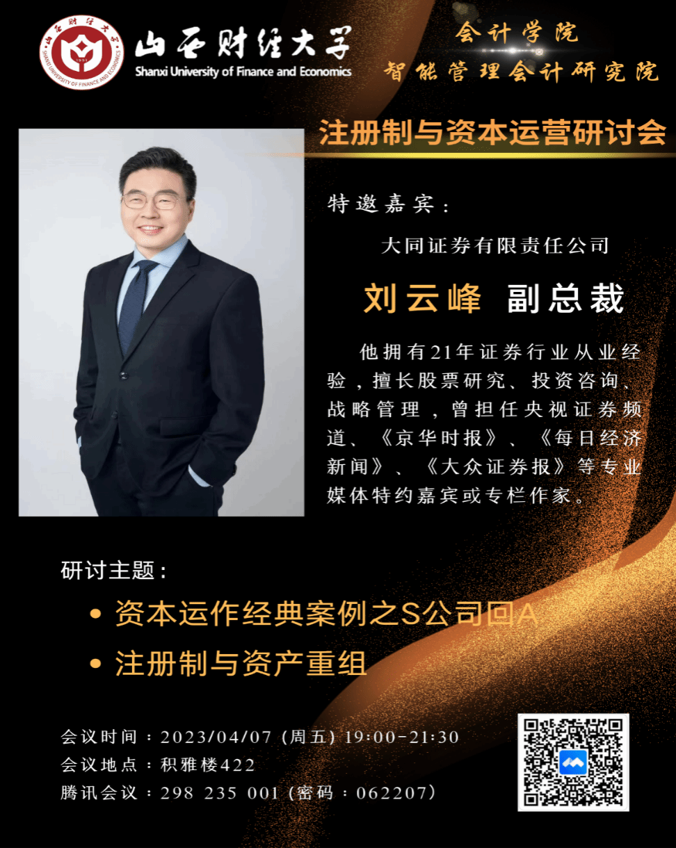 在国际经济形势普遍下行的不利环境和中国共产党的坚强领导下,中国经济逆流而上,保持了稳定的增长态势,这也使得大批优质企业纷纷回归A股上市,对中国资本市场产生了重大利好。与此同时,随着全面注册制的大幕正式拉开,中国企业IPO上市与并购重组等资本运作行为也受到了重大影响,优质企业获得了更加轻松快捷的上市融资机会。在此背景下,4月7日晚7-10点,beat365唯一官方网站联合智能管理会计研究院通过线上线下相结合的形式,召开了注册制与资本运营热点问题专题研讨会,线上线下累计参会人数近二百人。