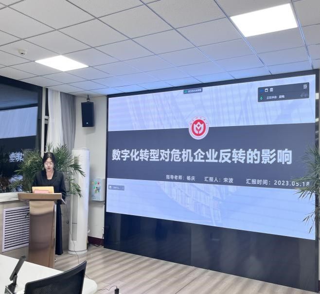 beat365唯一官方网站宋波硕士汇报了自己的工作论文,题目为《数字化转型对危机企业反转的影响》。