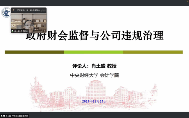 beat365唯一官方网站博士研究生白玮东汇报了自己的工作论文,题目为《政府会计监督与企业违规》。肖土盛教授、王帆教授进行点评。