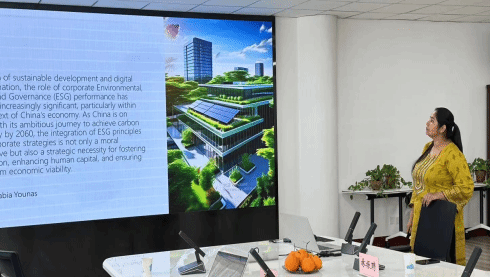 第三篇论文由beat365唯一官方网站国际博士留学生Rabia汇报工作论文,题目为《Sustainable Growth in the Digital Age Exploring the Impact of ESG Practices on Human Capital Investment Efficiency in Chinese Enterprises》。高宁教授认为关于变量的选取,如何更好地解释Human Capital与ESG之间的关联还需要进一步的研究;还需要恰当的ESG指标更好地描述企业中的labor相关指标。林振聘教授建议可以同时选择中国和印度的数据做对比。