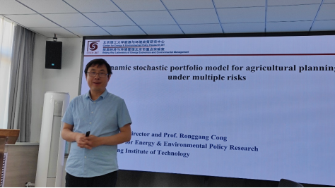 5月15日上午从荣刚教授和林振聘教授做学术报告。北京理工大学前沿交叉科学研究院能源与环境政策研究中心从荣刚教授做了题为《A Dynamic Stochastic Portfolio Model for Agriculture Planning Under Multiple Risks》(投资组合理论在资源环境经济学中的应用)的主题报告。生态学家一直认为,生物多样性对生态系统的稳定性和复原力很重要,因此可以提供自然保险。我们研究了耕地土壤生物多样性的保护是否是控制农业风险的有效策略。为此构建了一个动态随机投资组合模型,用于在多重风险下优化作物种植面积和土壤有机碳的储量。该文使用了投资组合理论,构建了作物生产函数,并且在计量方面使用 Copula Model。该模型考虑了天气风险、市场风险和土壤碳的状态转变,并且为农业风险的作物规划和土壤管理提供了新的视角。首先,通过将种植面积多样化到少至四种作物,可以牺牲30%的收入为代价来降低70%以上的作物生产风险,这意味着在风险和收入之间的不对称方面实行“70-30”规则;其次,保护(投资于土壤碳)和趋同(减少土壤碳的差异)是农民在动态背景下的两种潜在的重要风险管理策略;最后,积极管理土壤碳,既能增加农业利润,又能降低未来的农业风险。