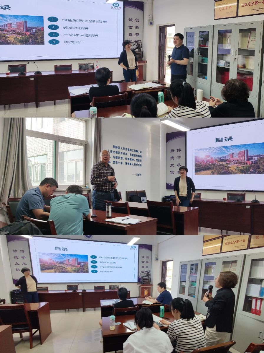在互动环节,续慧泓教授依据沈教授的报告内容对山西省发展情况进行了解读;李颖教授、吴秋生教授、袁春生教授,青年教师田峰、上官泽明、郭檬楠以及博士生牛浩洋先后围绕碳排放权交易会计处理、碳排放核算、气候风险等热点问题与沈教授展开深入讨论。本次报告既是应对国际绿色贸易壁垒的学术研讨,更是推动学院绿色低碳研究方向进一步深化的重要契机。