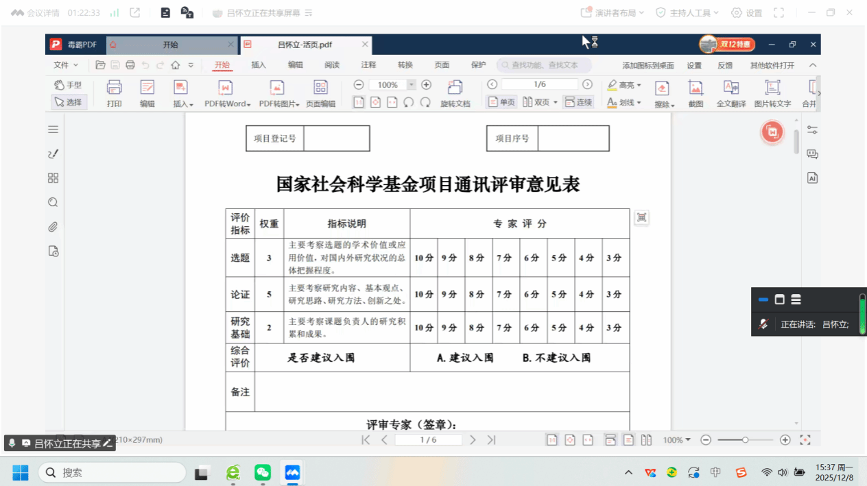 会上,吕怀立教授结合自身多次申报国家自科和社科基金项目的经验,围绕课题申报核心环节系统分享,指出申报失败多因选题缺乏新颖性、研究基础薄弱或申请书撰写不规范,而选题是成功关键,需兼具创新性、实用性与前瞻性,贴合国家社会需求并提炼为学术关注的科学问题;他还详解了申请书撰写中研究内容概括、学术史梳理等技巧,强调避免AI写作痕迹、注重排版与逻辑严谨,透露评审专家重点关注选题创新、研究基础与方法科学性,并结合案例示范如何结合时事热点与跨学科视角提炼科学问题,提醒申报者需展示相关高质量成果、规范引用权威参考文献,也可邀请跨领域专家评审吸纳修改建议。