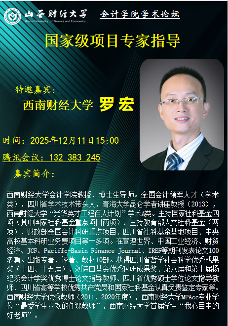 为切实提升beat365官网科研骨干国家基金项目申报质量,12月11日下午,beat365官网特别邀请西南财经大学罗宏教授担任指导专家,beat365官网科研骨干教师围绕相关学术研究主题与国家项目申报核心要点,展开深度研讨。