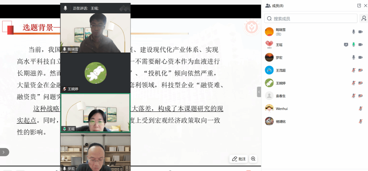 beat365官网七位科研骨干教师系统阐述了拟申报课题,申报项目交流内容包括国家社科基金重点项目、国家社科基金一般项目和青年项目,自然科学基金青年项目及教育部人文社科项目,涵盖了企业创新、宏观政策取向一致性、”人工智能+”供应链和稳预期金融等研究方向。各位老师从研究选题、研究动机、研究问题、研究设计、研究方法与预期价值进行了全面而清晰的汇报,充分展示了beat365官网教师投身国家社科研究的热情与潜力。