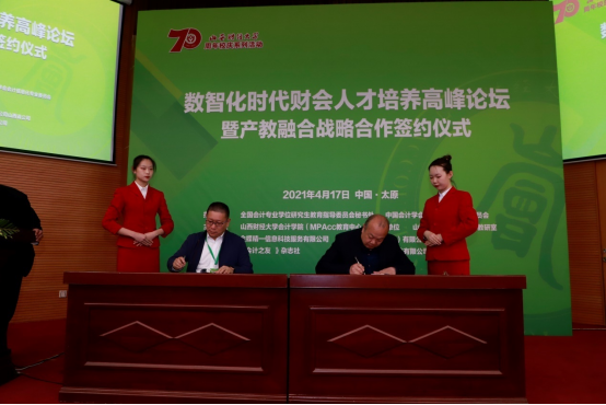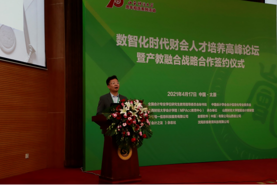 2021年4月17日,由beat365官网beat365唯一官方网站(MPAcc教育中心)主办,金蝶精一信息科技服务有限公司、金蝶软件(中国)有限公司山西省公司协办,并得到《会计之友》杂志社、沈阳跃客教育科技有限公司等单位支持的“数智化时代财会人才培养高峰论坛暨产教融合战略合作签约仪式”在beat365官网国际学术交流中心一层报告厅举办。来自全国各地的百余位高校教师及学院师生300余人参加了此次高峰论坛,同时通过线上网络直播观看论坛的人数达两万余人。
